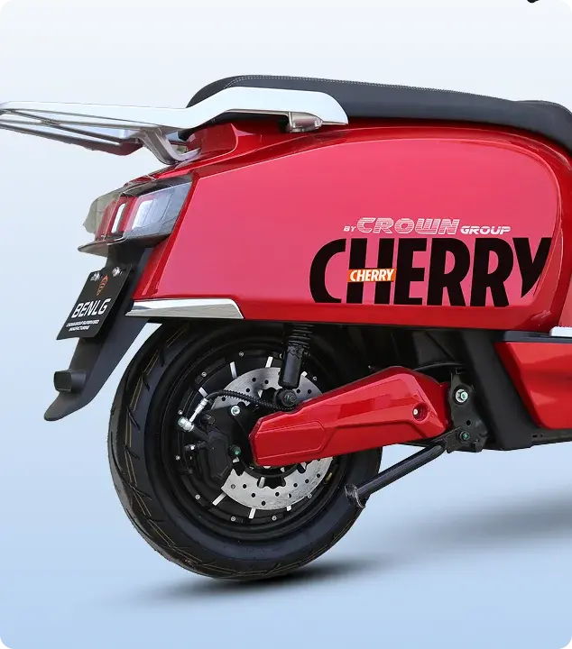 The Crown Electric Cherry is a stylish 3000W electric scooter in Pakistan, blending vintage charm with modern power. Designed for urban commuters, it delivers a smooth, efficient ride with bold aesthetics and high-performance capability