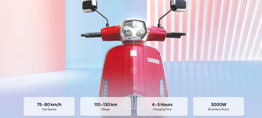 The Crown Electric Cherry is a premium 3000W electric scooter in Pakistan, delivering unmatched speed, style, and efficiency. Powered by a 3000W motor and a 72V 40Ah Lithium-LiFePO₄ battery, it offers a top speed of 80 km/h and a range of up to 130 km. With fast charging, zero emissions, and sleek design, it’s the ideal choice for modern urban riders seeking high-performance and sustainability.