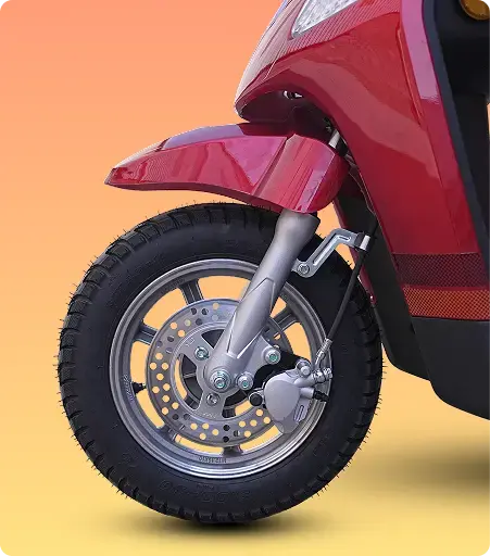 The Crown Electric Ezee comes with a front disc brake and rear drum brake, designed to provide reliable stopping power and enhanced ride stability. This setup ensures smoother, controlled braking, giving riders confidence on every journey while maintaining safety and comfort in urban conditions