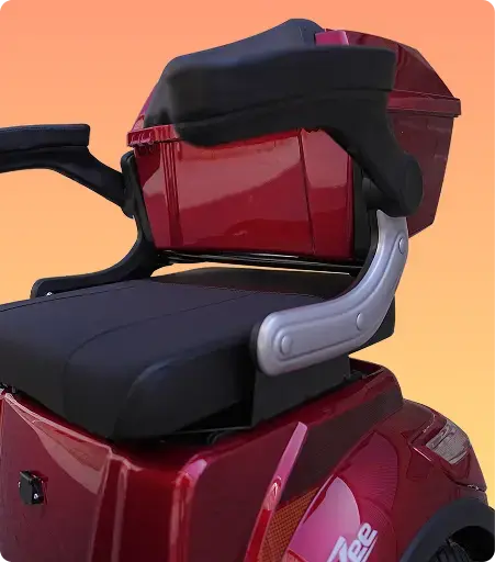 The Crown Electric Ezee features a comfortable, ergonomically designed seat for a smooth and enjoyable ride, even on longer journeys. Its adjustable armrests offer personalized comfort and control, making every ride effortless, safe and perfectly tailored to you